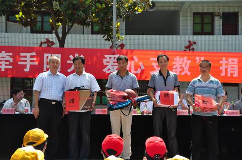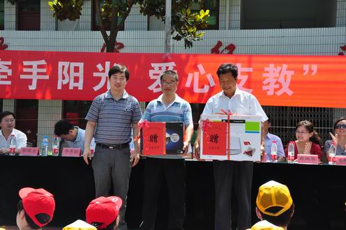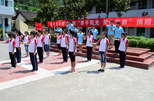之后,建工学院党委书记刘青云讲话。他首先对长期以来支持和配合我校开展大学生实践工作的镇安县及结子中学的领导、老师表达最衷心的感谢;二是系统回顾了结子中学与建筑工学院这十二年的友谊,并高度评价了结子中学在为建工学院开展大学生社会实践活动所发挥得作用,以及为提高我院广大学生的社会服务能力以及动手能力所做出的贡献;三是介绍了本次支教实践的特色及创新之处;四是对全体实践队员提出了五点希望,即继续保持谦虚谨慎的态度,虚心学习当地群众学习;在支教活动中,要有高度的责任心和使命感,精心备课、用心授课,并积极摸索出合适的教学方法,以保证支教效果;注重理论与实践相结合,以服务当地经济社会发展;努力做学生的可敬师长和知心朋友;严守各项纪律,注意自身安全,保证支教活动安全、有序进行。随后,郭主任和刘书记分别为结子中学捐赠了总价值近万元的打印机、扫描仪、笔记本电脑,文体用品等。