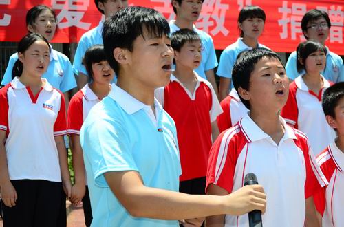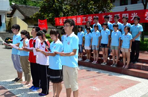 捐赠暨结对帮扶仪式结束之后,全体领导饶有兴致地欣赏了由实践队成员策划、排练的支教实践汇报演出,虽然天气酷热,但精彩的节目让台下不时响起了阵阵掌声。演出结束后,全体领导与实践队成员合影留念。