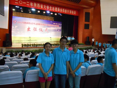 此前,三名研究生支教团成员参加了2012年陕西省大学生志愿服务西部计划暨研究生支教团为期四天的岗前集中培训,系统学习了陕西省经济发展现状、农业发展前景、基础教育等方面知识,并了解了西部计划和研究生支教团项目在陕实施情况及相关政策。支教团成员表示要认真学习胡锦涛总书记给北京大学第十二届研究生支教团回信精神,积极践行“奉献、友爱 、互助、进步”的志愿服务精神,实践学习,向人民群众学习,在服务基层中增长才干,磨练意志,“用一年的奉献,收获一生的财富”。