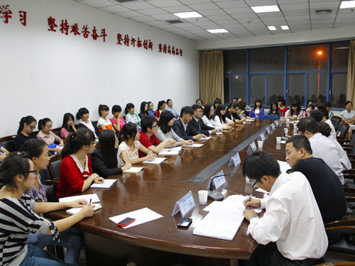 2012年9月18日晚7点,长安大学艺术特长生专题会议在朝晖大学生活动中心一楼会议室召开。校党委副书记白华、校长助理彪晓红、武装部部长、学工部副部长徐卫、校团委书记张骞文、长安大学招生办主任丁珊、大学生艺术团指导老师张艺凡、吴鹏、校团委部分出席会议。大学生艺术团主席团成员、各演职部门负责人、2010、2011、2012级全体艺术特长生参加了此次会议。会议由校团委副书记张永主持。