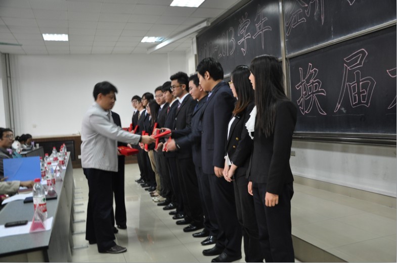 在阵阵掌声中,学院领导和老师为新一届学生干部颁发了聘书,并对他们的成功竞聘表示祝贺。