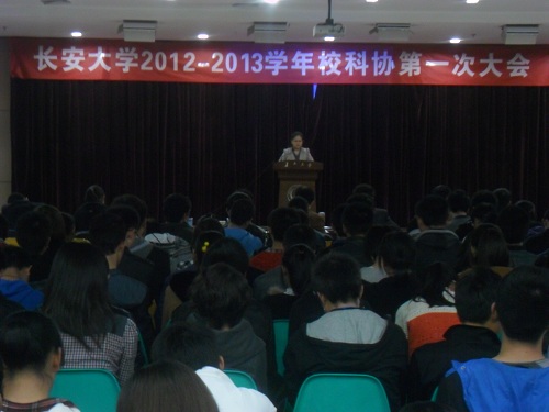 2012年10月22日19:00,长安大学大学生科技创新与创业协会(以下简称“校科协”)在朝晖大学生活动中心多功能厅召开了本学期第一次全体例会。学生创新创业教育委员会办公室主任郭军杰、校团委社会实践指导部主任郑玮华、校团委老师邱贞龙出席会议,校科协全体成员、各院系科协主席、科创类社团负责人参加了本次会议。校科协办公室副主任曹彧主持会议。