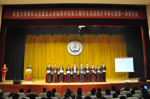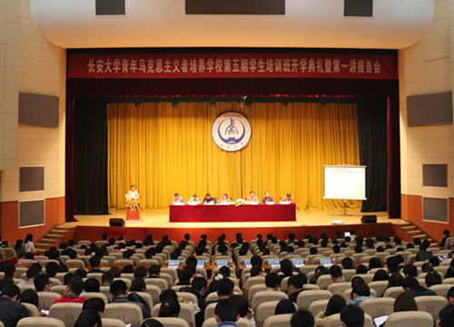 10月29日19:00,长安大学青年马克思主义者培养学校第五期培训班开学典礼暨第一讲报告会,在朝晖大学生活动中心大礼堂举行。校长助理彪晓红,学工部部长贺宏斌,渭水校区管委会副主任张步宏出席大会,校团委全体干部、各院(系)团委(团总支)书记,第四期校级“青马”培训班优秀学员代表,第五期校院两级“青马”学员参加此次报告会。会议由校团委书记张骞文主持。