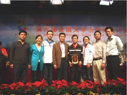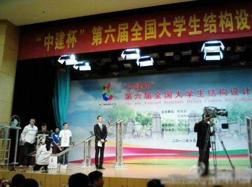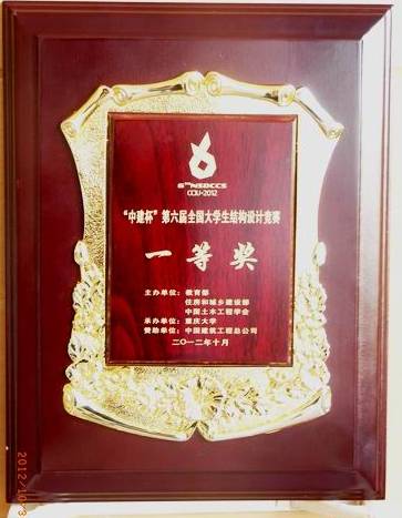 2012年10月25日-27日,由国家教育部、住房和城乡建设部、中国土木工程学会主办,重庆大学承办的“中建杯”第六届全国大学生结构设计竞赛在重庆大学隆重举行。我校参赛队荣获一等奖。