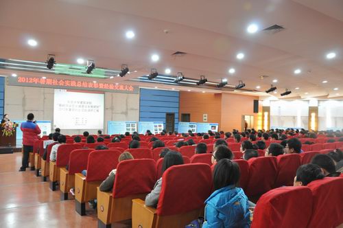 11月13日下午,我校2012年暑期社会实践活动总结表彰暨经验交流大会在渭水校区会议中心学术报告厅举行。校党委副书记白华出席大会并讲话。校长助理彪晓红、学工部部长贺宏斌、党校常务副校长牛跃平、渭水校区管委会办公室主任袁春学以及各院(系)主管渭水校区学生工作的院领导、团委(团总支)书记、受表彰的师生代表参加了会议。会议由校团委书记张骞文主持。