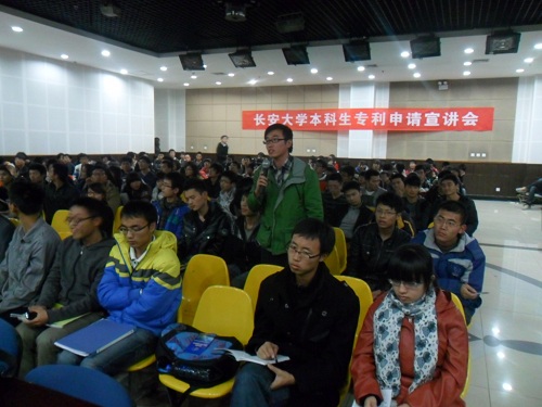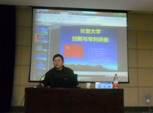 紧接着,惠文轩所长对西安睿通知识产权代理事务所作简要介绍。然后分别从创新的概念、专利的基础知识、专利说明书的撰写、学生专利申报流程四个板块向同学们详细讲解专利申请的知识和方法。培训过程中,他着重强调了创新的重要性,要加强自身创新能力以保持在社会中的竞争力。之后,他用通俗易懂的语言对“专利”、“专利权”、“专利制度”和“专利法”等专业术语作以简要阐释,得到了同学们的一致认可。接着,他针对专利说明书的撰写、专利申报流程和技巧做了详细说明。最后培训会在一阵阵热烈的掌声中圆满结束。