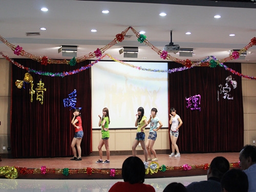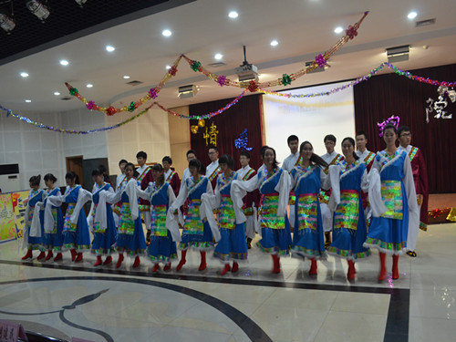 “情暖理院”迎新联谊晚会以民族舞蹈《扎西德勒》拉开爱的序幕,铿锵有力的步伐,优美婉转的舞姿,点燃了观众的热情,现场气氛顿时升温。晚会节目形式多样,诗歌朗诵、现代歌舞、话剧、脱口秀、乐器合奏、手语舞••••••抑扬顿挫的诗歌朗诵《放歌十八大》,自豪激动地表达对祖国大好河山的热爱和对党的信仰;活力四射的现代街舞《Gee》、《rainism》用跳动的音符演绎青春的活力,动感的舞姿展示青春的魅力,花样年华由此舞动出更多的奇迹;幽默搞笑的话剧《大话荆轲》、大一新生模仿周立波脱口秀《海派清口》、《因为爱情》歌曲反串等精彩节目,为观众带来了一场视觉与听觉的盛宴。在晚会《击鼓传花》游戏环节,同学们积极热情,被击中者勇于展示才华,表演节目。压轴的手语舞《我的中国心》,将晚会推向了高潮,无声但有力的手舞伴随着激昂的小提琴伴奏,此刻所有师生的心凝聚在一起,为祖国献上深深的祝福。晚会上,我院党委书记姜洪老师倾情演唱《家的味道》,与台下同学合唱《明天你是否依然爱我》,院长封建湖老师唱响陕西民歌,掌声伴随着欢笑声,同学们情不自禁地挥动双手,将自己融入这火热的夜。