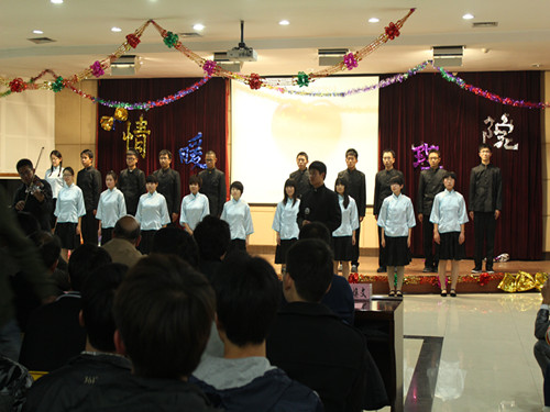 首先,由院长封建湖为晚会致辞。封院长首先向出席本场晚会的嘉宾表示热烈的欢迎和衷心的感谢,并希望通过这次温馨的晚会促进师生、新老生之间的交流,鼓励新生努力学习,要求老生做好榜样,最后封院长预祝联谊晚会取得圆满成功。