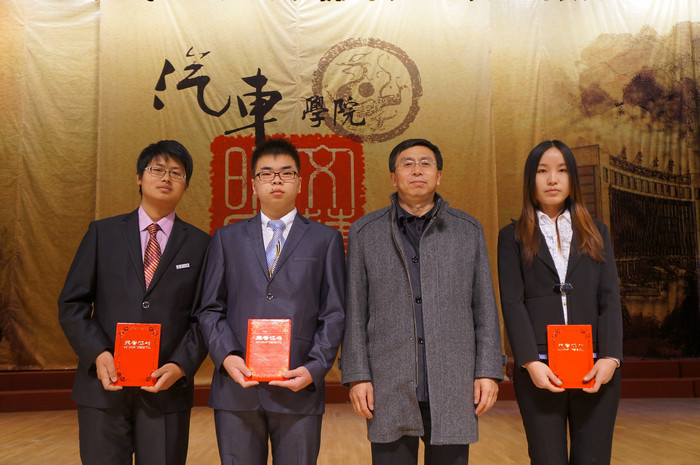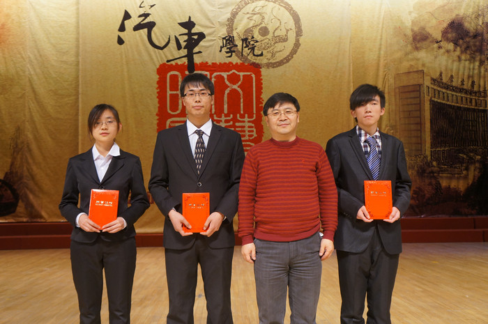19:00,典礼正式开始,王凤波副总经理、白书记、汽车学院院长余强、宋黎军处长分别为王白侠等103名荣获法士特特、一、二、三等奖的同学颁发了获奖证书。