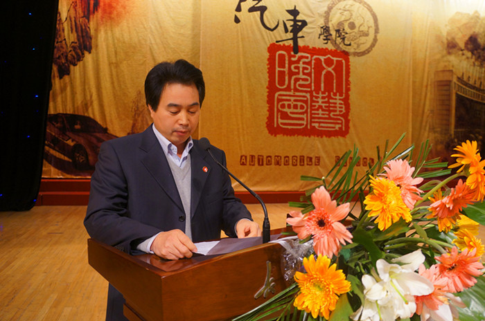 颁奖过后,汽车学院党委书记肖润谋致辞。肖书记首先代表我院全体师生向法士特公司代表、各位校领导、到场的老师表示了衷心的感谢,感谢他们对我院工作的大力支持。接着。肖书记又向全体获奖同学表示热烈祝贺,并激励他们再接再厉,以取得更好的成绩,回馈社会,为我国民族汽车事业的振兴做出贡献。随后,肖书记向大家介绍了陕西法士特齿轮传动有限公司,赞扬法士特公司在全国汽车行业产生的深远影响,感谢法士特公司在人才培养领域做出的巨大贡献。