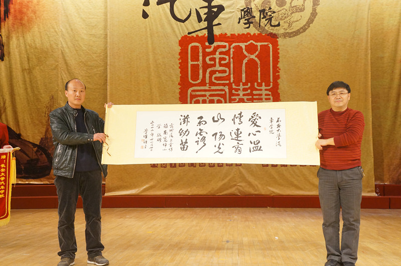 典礼前,白华副书记在朝晖大学生活动中心二楼贵宾厅会见了陕西法士特集团公司王凤波副总经理一行并赠送礼品。白书记对法士特集团设立奖学金回报社会,支持学校建设与发展表示敬意和赞扬,向法士特集团对学校人才培养的支持表示感谢。他希望双方能进一步深入加强交流合作,发挥各自的资源优势,共同培养高素质人才,共创辉煌。