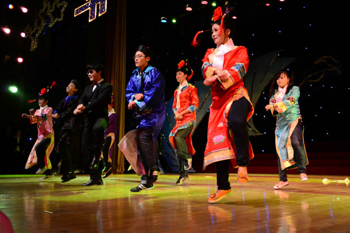 幽默的开始场频与青春活力的开场舞结束后,院党委书记胡予欣老师为迎新晚会致辞,并预祝晚会圆满成功。经管学院晚会节目形式多样,包括街舞、民族舞、歌曲串唱、话剧、相声、魔术、小品等类目共12个节目,整场晚会近两个小时的演出为观众们带来了一场如梦如幻、激情四射的视听盛宴。街舞活力动感,《茉莉花》清新典雅,话剧《甄嬛传》笑料百出,魔术蓝调浪漫、搞怪舞蹈、《超级大学生评选》更是笑翻全场。台上演员表演投入,或风趣幽默,或生动优美,台下气氛热烈,观众们热情高涨,掌声笑声此起彼伏,微博墙上实时滚动同学们对晚会的感受。网络与现场的互动扩大了晚会的影响范围,现场之外的老师同学们也能感受晚会带来的欢乐。欢歌笑语声中,经济与管理学院2012年迎新晚会落下帷幕。