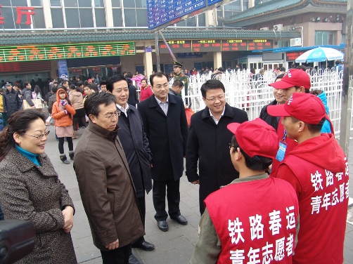 2月6日下午,团省委书记李豫琦、团省委副书记徐永胜、西安铁路局党委副书记高安岗、校党委副书记白华、校长助理彪晓红一行到西安火车站看望并慰问了正在开展春运志愿服务的我校青年志愿者。