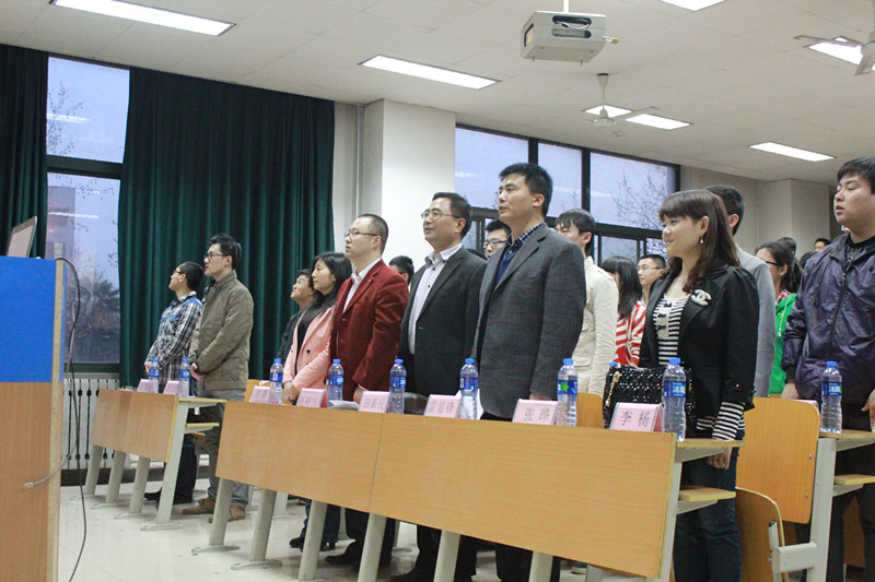 开班典礼在82位青马班新学员及与会老师庄严的国歌声中开始。首先,院党委副书记雷显锋老师致开班辞。雷老师首先热烈地欢迎新学员的到来,随后指出,近来党中央大兴学习之风,十分关注大学生的理论学习,因此提高大学生的理论素养、研究能力和实践能力,培养一批上进的学生干部是十分必要的,而青马班旨在培养坚定的马克思主义者和中国特色社会主义的建设者。他强调学员们在学习中做到“两个到位,三个注重,四个提高和多方配合”。