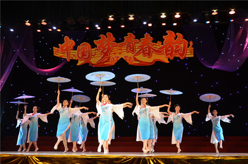 中国梦,腾飞梦,梦萦神州;青春韵,强国韵,韵系中华。美妙的音符展现了我校大学生艺术团的丰硕教学成果,也展示了我校青年学生朝气蓬勃的青春风采和艺术才华,激励广大青年学子坚定理想信念,矢志艰苦奋斗,在实现中国梦的生动实践中放飞青春梦想 ,在为人民利益的不懈奋斗中书写人生华章。音乐会在大学生艺术团指导教师吴鹏与潘迎深情合唱《东方有一个梦》中圆满落下帷幕。