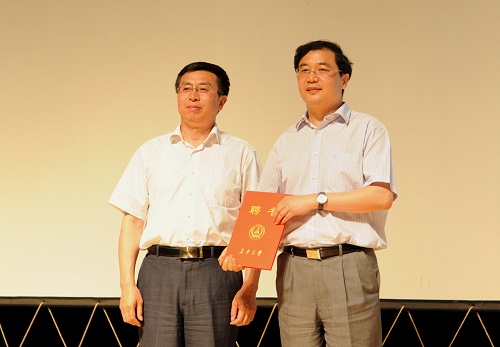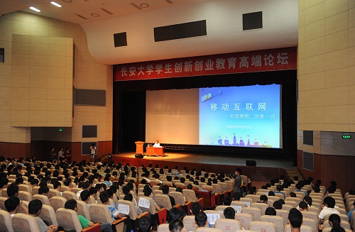 2013年5月13日晚,学生创新创业教育高端论坛第六讲在渭水校区朝晖大学生活动中心大礼堂成功举办。中国移动通信集团陕西有限公司董事长兼总经理赵大春先生受聘担任我校兼职教授,并作了题为《移动互联网——实现梦想,改变一切》的专题讲座,我校党委副书记白华出席讲座并为赵大春先生颁发聘任书,信息学院院长宋涣生主持讲座。