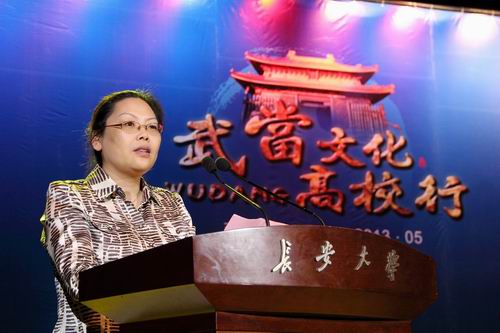 武当山旅游经济特区管委会副主任杨丹华介绍了武当文化的历史渊源。他指出武当承载着深厚的历史与精神,而大学生承载着中国的未来与梦想,大学生是中国梦的承载者、实践者、圆梦者。他希望我校大学生能发扬武当的侠义精神,做到“为天地立心,为生民立命,为往圣继绝学,为万世开太平”。