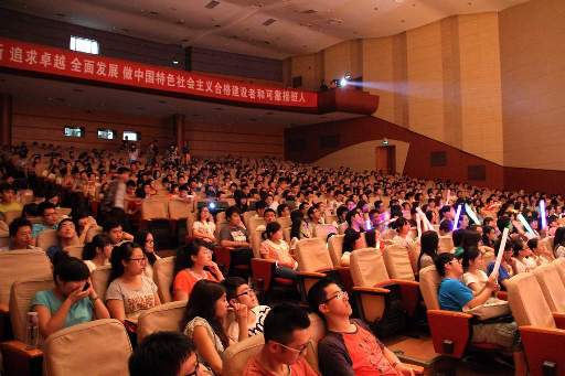 演出期间,陈时俊的母亲到场支持,陈婷同班同学献上生日的祝福,浓浓的亲情、友情让在场观众为之动容,整个大礼堂都萦绕在温馨感动的气氛中。陈婷、陈时俊同学感谢母校的培养,感谢学校、学院领导和老师的悉心指导和大力支持,感谢学校提供施展艺术才华的舞台,陈婷同学同时也表达了即将离开母校的不舍之情。他们用歌声向渭水道别,用歌声期盼美好未来。