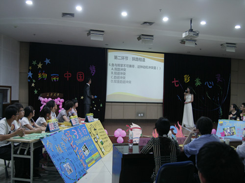 2013年5月26日晚7:00,由长安大学校团委、长安大学学工部主办、校彩虹心理协会承办的“绚丽中国梦•七彩美心灵”第五届心理知识竞赛决赛在长安大学渭水校区朝晖大学生活动中心三楼多功能厅举行,并获得圆满成功。长安大学新闻中心主任、党委宣传部副部长曾乐元老师,长安大学学工部部长贺宏斌老师,长安大学团委书记张骞文老师,长安大学招生办主任、原长安大学心理健康教育与咨询中心主管领导丁珊老师,长安大学渭水校区管委会办公室副主任王振山老师,长安大学学工部副部长、心理咨询中心主管领导王冰老师,长安大学学工部副部长冯鹃老师,长安大学心理健康教育与咨询中心主任贠丽萍老师出席本次大赛并担任评委。