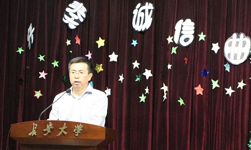 2013年6月16日晚19:00,由长安大学学工部、长安大学团委、中国银行陕西省分行主办,校爱心助学导航站承办的“齐奏诚信曲•感怀资助请•共筑中国梦”首届诚信与资助知识竞赛在历时半个多月,经过预赛和复赛的激烈角逐之后,最为激动人心的决赛终于在长安大学朝晖大学生活动中心三楼多功能厅正式拉开帷幕。中国人民银行西安分行王开怀、中国银行陕西省分行张天民、长安路支行苏芳行长、长安大学党委副书记白华老师等莅临比赛现场;长安大学新闻中心主任、党委宣传部副部长曾乐元老师、学工部部长贺宏斌老师、长安大学团委书记张骞文老师等作为评委出席本次比赛。