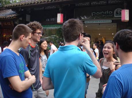 抵达成都后,大家先后参观了古街锦里,杜甫草堂,青羊宫,武侯祠,大熊猫繁殖基地,春熙路等地方。在一路的参观学习中,通过对历史的了解与现代生活的对比,从中深刻感悟和体会了古今强国梦想的异同,从而更好的发扬和实现伟大的中国梦和长大梦。在参观学习的过程中,大家还通过自己所学专业知识,主动联系各个热门景点的管理人员义务为外籍游客担任导游,为其讲解,得到了国际友人和地方管理人员的一致好评。