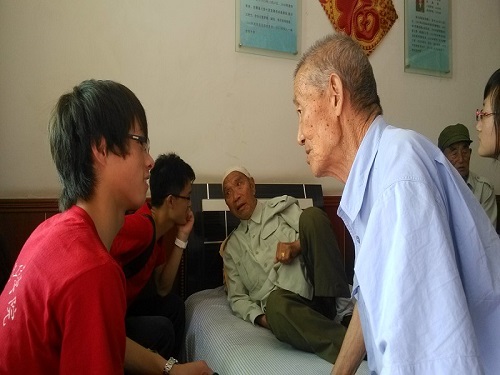 参观完纪念馆,队员们带着崇敬的心情来到了延安八一敬老院采访老党员,队员们与老党员们亲切交谈,认真聆听了老党员们讲述当年的革命岁月,队员们与老人们结下了深厚的友谊。