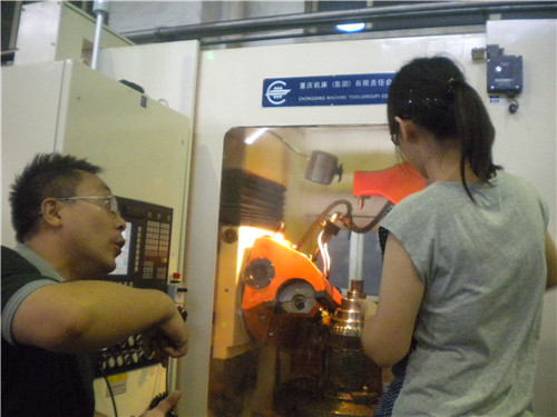 河北钢铁集团宣工公司工厂技术人员为同学讲解机床工作原理