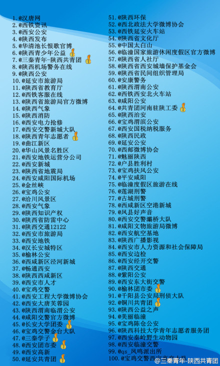 全国十大高校团委官方微博 2013陕西省政务微博影响力排行榜
