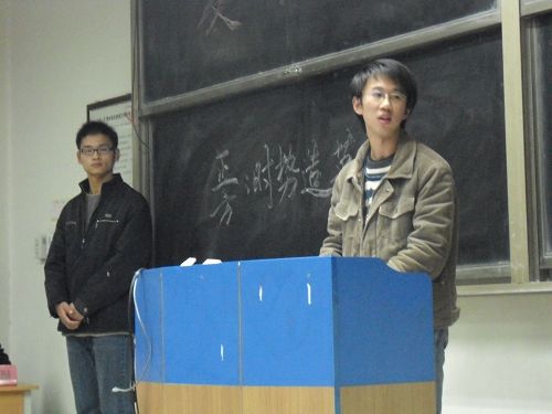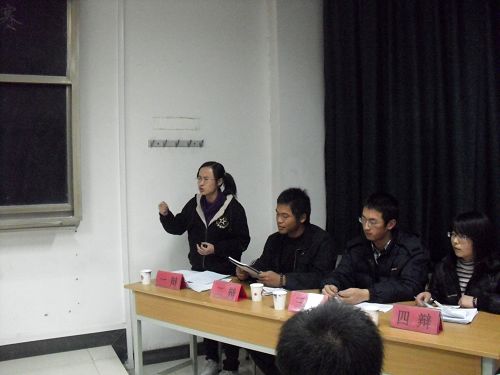 当晚共进行了两场比赛,第一场辩论赛主题围绕“时势造英雄”还是“英雄造时势”展开。在宣布辩论程序和规则后,辩论正式开始。来自宣传部、团支部、爱积金的四名正方辩手和来自新闻部、策划部、财务组的反方辩手围绕“造”究竟是“造就”还是“影响”“改造”展开激烈辩论,双方你来我往,针锋相对,将气氛一再推向高潮。反方一、二辩手表现尤为突出,获得阵阵掌声。自由提问时间台下观众也非常活跃,与台上正反方辩手互相交流了看法。规则评委评议后,徐靖部长对各辩手表现作了详细精彩的点评。辩论赛由反方“英雄造时势”获胜,正方一辩朱建辉获得最佳辩手。第一场结束后,文艺部献上歌曲《爱上未来的你》。稍事休息,第二场辩论开始。辩题为“以成败论英雄是否可取”,辩论同样精彩,结果由反方获胜,最佳辩手为正方三辩葛恺获得。田辰部长做了精彩点评。虽然失败,但正方主动提出与反方握手以示友好,气氛十分融洽。