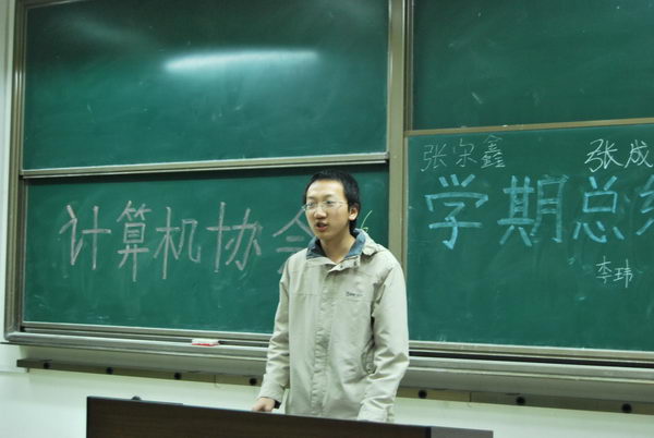 2009年12月11日晚7:30,计算机协会学期总结大会在明远1208教室顺利举行。此次大会主要针对计算机协会本学期的相关工作进行总结,并简单介绍下一学期的活动安排,为更好地发展社团服务会员打下基础。会议由秘书处干事支俊芳主持,各部部长及大一干事都踊跃参加,约到场80人。