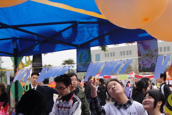11点钟,活动渐入高潮,往来的同学不断增多,计算机协会的有奖竞答活动吸引了很多同学驻足,题目内容主要为计算机基础知识,根据难易程度分为三等,为答对的同学发放不同的奖品。此外,4台电脑上播放的Flash动画也获得诸多同学的好评。活动中,40本会刊《PC风》供同学免费阅读,最后随机赠出25本,剩余15本赠予参展的其他组织作交流使用。