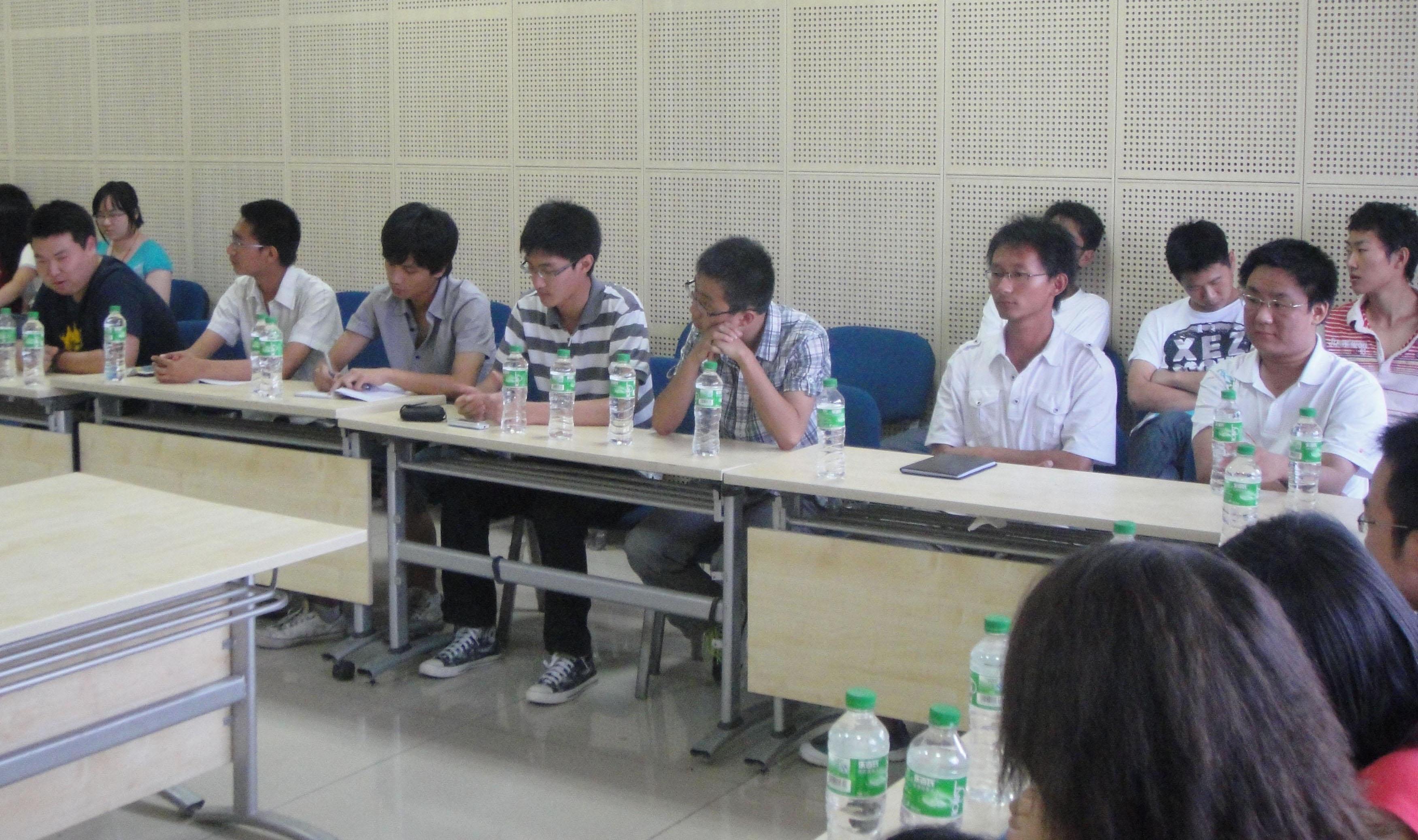 7:10,主持人姜磊宣布交流会正式开始,此次交流会分为三个环节。首先,各位主席对本协会在过去一年里的工作进行总结并提出协会的发展方向。在这个环节里,他们提出了很多宝贵的经验:如何拉外联,如何做宣传,如何增强协会的内部凝聚力等。使在座大一的受益匪浅。第二个环节是大一负责人向各位主席提问,经过这个环节,他们消除了心中的疑惑,对协会以后的发展有了更加全面的了解。接下来是互相交流环节,大一的各位负责人向大家做了自我介绍,大家有说有笑,还有几个负责人给大家表演了节目,现场气氛十分活跃。