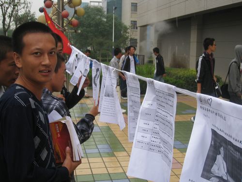 9月28日早晨,爱国同盟的全体成员在几天以来的精心准备之后,开始了“聚焦钓鱼岛”活动的现场安排。此次活动分东西区食堂门口两个活动场所进行,它是以图文的形式向大家全景展示“钓鱼岛事件”的发展始末。虽然一大早天空就下起了丝丝秋雨,但此次活动依然在有序进行中,并没有因此而受到影响。