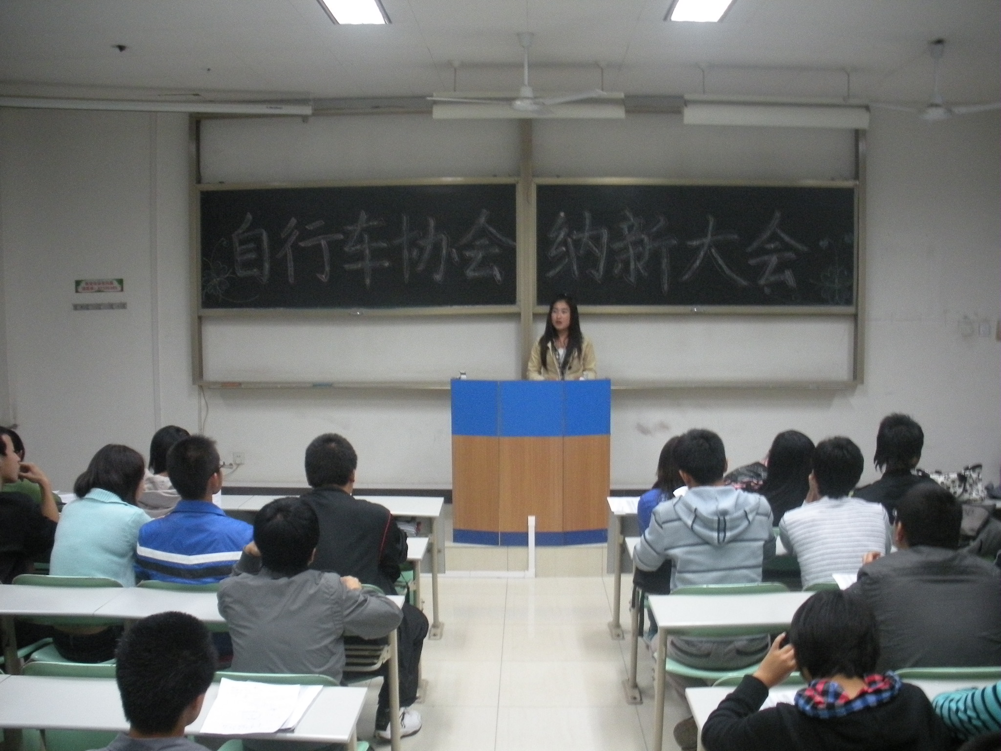 刘云亮首先简单介绍了自行车协会的发展历程及相关概况。随后,副主席岳跃武对社团的各大部门及相关职能以及协会的有关活动作了具体介绍。各部部长亦上台详细介绍了本部职能,并欢迎新成员踊跃报名,给自己一个锻炼的机会。