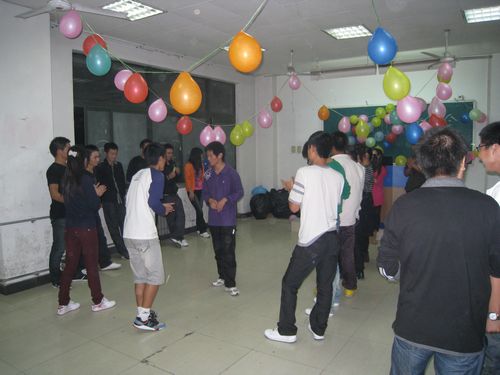 随后,毛遂自荐式的一系列表演便开始了,在主持人的逐一介绍之下,预先有准备节目的同学便在这样一个小却温暖的舞台上展示自己的才能。歌曲,诗歌朗诵,笑话,讲故事等节目得到了大家的热烈掌声。最后,游戏“比比猜猜”将本次的联谊会推向了高潮,看着参加游戏的同学的动作一次次的被复制、翻版,最终完全脱离了原来的样子,同学们笑的前翻后仰,整个教室都是同学们欢快的笑声。