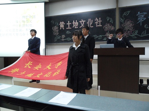 2010年10月17日晚,黄土地文化社于WT1103教室召开了第一次会员大会。参加此次大会的有:大一全体社员,大二全体干部,上一届大三的干部,以及特邀嘉宾,包括兄弟社团的主席,渭水之星获奖者等。