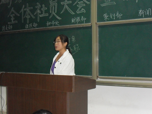 会议共分五项进行。首先主席李善华发言,向新成员致以热烈欢迎,阐述了我们曙光协会如家般的温暖,并介绍了社团文化传统以及社团的特色活动等。大会第二项,由团支书王鹏为大会宣读社团章程,使大家对社团的发展有一个明确的了解。大会第三项,由前任主席罗炉做特约讲话,经验丰富的他,与大家分享了他两年的工作心得,并对新一届各部门干部寄予很高的期望,期待新成员的精彩表现,期待他们能把曙光的明天建设的更加美好。大会第四项,各部部长简单介绍各部门职责,让曙光的每一份子充分了解社团结构,为竞选奠定基础。至此,会议进行到了精彩环节,大会第五项,新生竞选副部长及干事。现场气氛浓烈,大家积极参与,踊跃发言,一个接一个,争先恐后。到了评审团的提问环节,大家也都应变自如。现场沐浴着和谐,温暖,而时间却在无形中流逝。由于人员众多,直到22:00,会议才进入尾声,主席对此次会议做了总结,并安排了随后需要跟进的一系列工作事项。