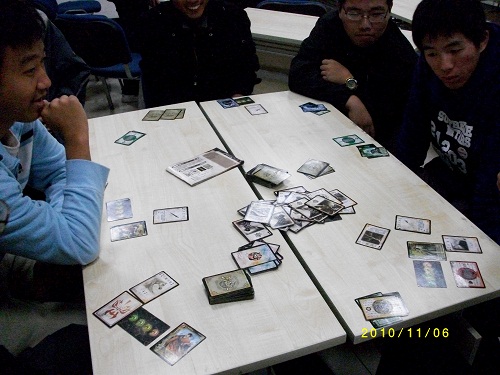 博弈协会于2010年11月6日在大学生活动中心社团活动室举办了一次三国杀交流会。此次活动应广大三国杀爱好者的要求,在协会领导者的组织和会员的积极参与下,得以顺利开展。活动主要分为两个环节,前一部分是游戏规则的介绍,后一部分是大家亲自实践,体验游戏。