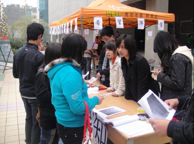 12、13日,我协会于学校东、西区食堂前同时开展活动,前来咨询、报名的同学络绎不绝,我协会会员一一耐心讲解,我协会会员向前来参加活动的同学详细地介绍了活动的各个流程,以及比赛的具体时间和内容,同学们热情高涨,当他们看到我们“低碳生活,生物多样性”的主题以及“让环保不再是口号”的活动口号时,大家都纷纷表示希望自己通过这次竞赛,能够对环保又进一步的了解,也希望自己能为环保事业贡献自己的一份力量。当听到这份共鸣时,我们心中不禁涌动出丝丝感动,我们承诺我们一定会尽快把试题的样式发到报名者的邮箱里,让同学们对试题样式有一个初步了解,并且希望大家能够取得优异的成绩。