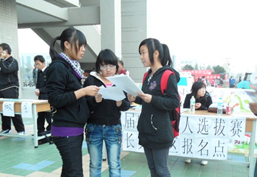 黄土地文化社作为“2010西安首届大学生时尚达人秀选拔赛”长安大学赛区的海选承办单位,感到非常荣幸,对此十分重视。本次活动在这三天的中午和下午放学的高峰开展,一共进行了六次,地点在东西区食堂门口。