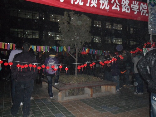 接下来就是正式的灯谜晚会了。主持人宣读了活动规则和奖项设定,并宣布令人激动的灯谜活动正式开始。同学们踊跃的进行了灯谜竞猜,工作人员也努力的维持活动现场秩序。社员们精心布置的场地之中熙熙攘攘的挤满了同学们,大家的热情非常高。活动仍在有序的进行,其乐融融的活动场面早就将冻冬抛至九霄云外,美妙的民间乐曲更是令人陶醉其中,一首《黄土高坡》更是对黄土地文化社的内涵的最好诠释。8点,晚会结束,工作人员以第一时间第一速度清理了现场,留在现场的工作者们合影留念。