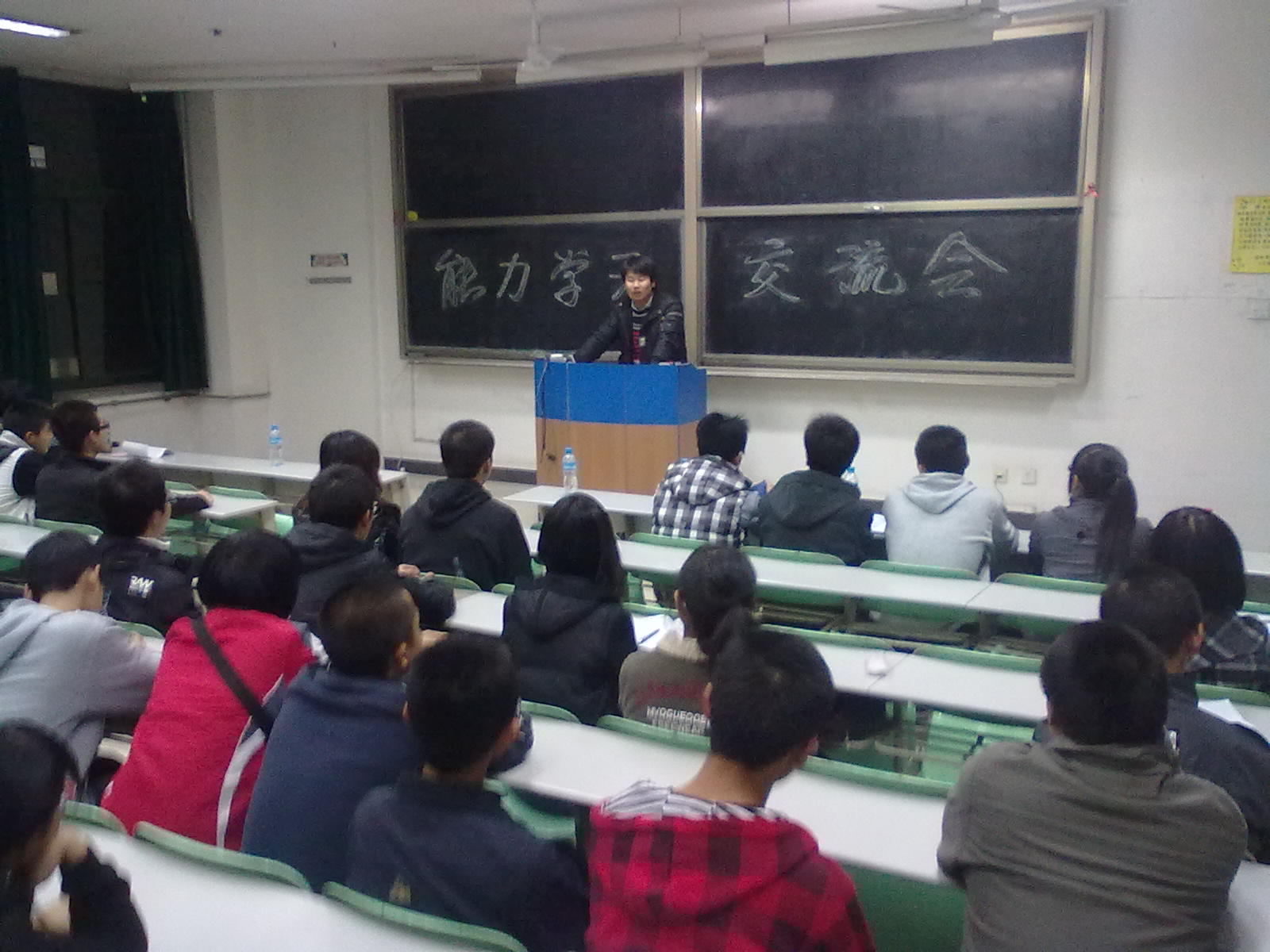 6:30能力学习交流会正式开始。学长前辈们依次讲述了他们的学习和生活心得。杜飞学长,讲述了自己在学生社团联合会的工作经历,使我们了解到,作为主席,他付出很多的努力,遇到过困难,也收获了成功。在他为我们总结的参加校园活动的经验中,让我们认识到了参加活动的意义,要提高自己能力,以及学到一些处理问题的方法。王青山学长,为我们介绍了校科协,讲述了他如何适当处理学习与参加活动的关系,在活动参加中不耽误学习,而且锻炼到自己的能力,合理分配时间尤为重要。还有要学会与他人合作与交流,提高做事效率。张天宇学长,作为学习的优秀的榜样,介绍了大量的学习方法和技巧,推荐了几本有价值的书籍,还与参加者交流了学习心得。