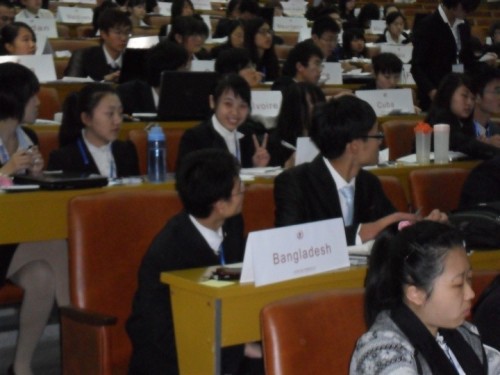 大会经历了开幕式、大会议程、闭幕式,其中大会议程分为安理会、联合国大会第一委员会、教科文组织三个会场。其中我校周欣然、王捷、逯赟同学代表孟加拉国出席人权委员会中,吴宽、王瑀、樊星同学代表英国出席安理会,刘方同学全程参与此大会活动。在会议期间,同学们就“孩子教育权”这一热点话题讨论。