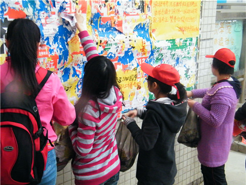 60多名希望阵营的社员开始了活动。本次活动主要通过清除粘贴栏上的小广告、整齐摆放自行车2项内容达到清洁校园的目的。活动期间社员们带着希望阵营的小红帽,手里拿着清洁工具,个个热情高涨、积极参与,大家齐心协力圆满的完成了各项任务,为校园的美丽与整洁奉献出了自己的一份力量。