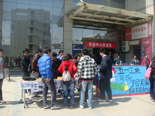 2011年3月28日中午,支农志愿者协会的“红领巾”们活跃在滋兰苑广场上了!为了即将到来的“五一”国际劳动节,支农志愿者协会正在筹备一场盛大的工地义演活动。活动将展现当代大学生对“三农”的关心和关注,通过文艺节目的形式为工地上的劳动者们送去歌声、舞蹈和欢笑,给他们带去美的享受,在展现长大学子爱心与风采的同时,使那些节假期间仍然在工地上忙碌的人们感受到关注、温暖。