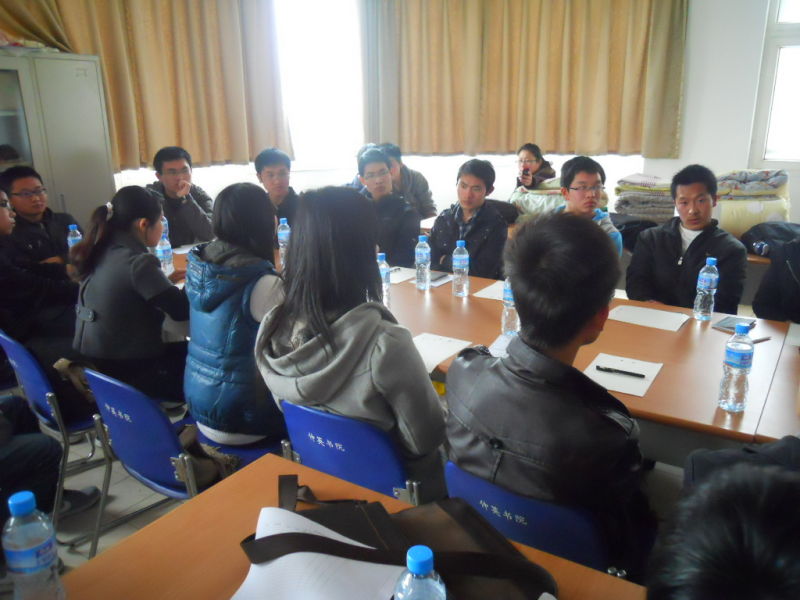 上午十一点,我们按时到达开会地点——西安交大的棋牌活动室。随后,各个学校代表也陆续到达会场。签到完后,会议正式开始。首先进行的是讨论、经验交流。大家各自代表自己社团自由发言,可以介绍上学期自己社团开展的精品活动,与大家分享成功的经验;可以指出自己社团所面临的问题与危机,请求大家的指点与建议;可以列举一些在开展活动中遇到的突发问题,希望得到较好的、及时的应对措施等。讨论在融洽、轻松与随意的气氛中进行着。