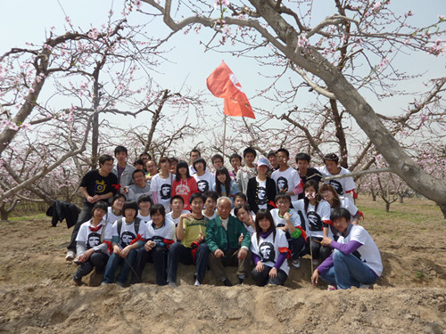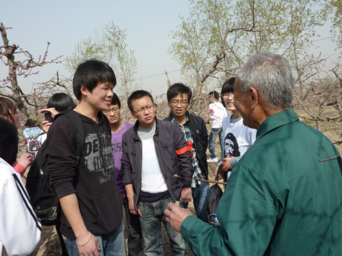 在和周大爷合影留念后,大家就踏上了回校的路程。于下午2:30,自行车队回到了学校。至此,支农志愿者协会这次的桃园授粉活动圆满结束。