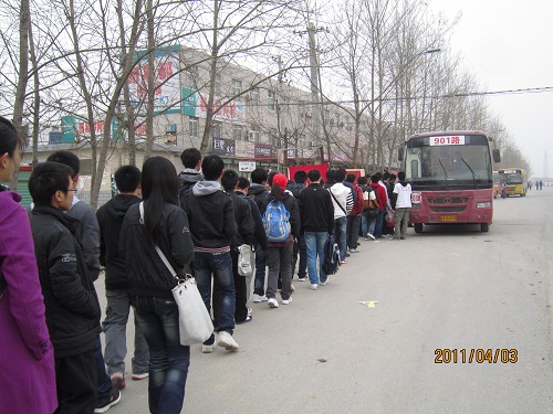 作为一名大学生,文明排队上车是我们应该具备的基本素质。在60周年校庆来临之际,该次促文明的活动也算是希望阵营为母校60岁生日献上的一份礼物!这次活动可以说取得了理想的效果,最后同学们都自发地排起队来。很多同学也表示,排队上下车不仅没浪费反而节省了大家的时间,同时也免去了同学们在车门前的拥挤之苦。