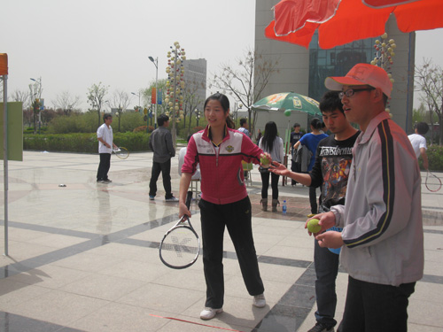 2011年4月10日上午9点30分,第二届网球俱乐部“网球嘉年华”活动暨网球趣味比赛在树惠园广场成功举办。活动一开始就聚集了许多前来参赛的同学,他们说在几天前就看到了关于这次活动的宣传海报,今天是特地来参加的。到中午11点左右,参加比赛的同学渐渐多了起来,有两个5岁的小朋友也被现场的热闹环境所吸引,拿着网球拍打了起来。又过了一个小时,活动进入高潮,每个比赛项目前都聚集了许多同学,其中最受欢迎的“默契大配合”前更是排了6队同学,他们看着正在参加比赛的同学,等待叫到自己的序号的同时,吸取经验,感悟这个项目的技巧。