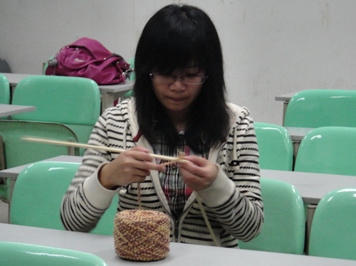 本次活动由支农志愿者协会提供毛线,不需要特别熟练的技巧,只要有一颗乐于助人,将爱延续的心,就可以加入到活动的队伍中来。经过紧锣密鼓的筹备和宣传,活动开始时教室里已经几乎是座无缺席,有的同学更是亲自带来了自己喜爱的毛线。挑线、上针,同学们专注的神态让人感动;数针、编织,同学们认真的投入更是让人心中一暖。技法较为熟练的同学还织起了花纹。一针阵,一线线,带着祝福与关怀,织出的不仅仅是御寒的围巾……